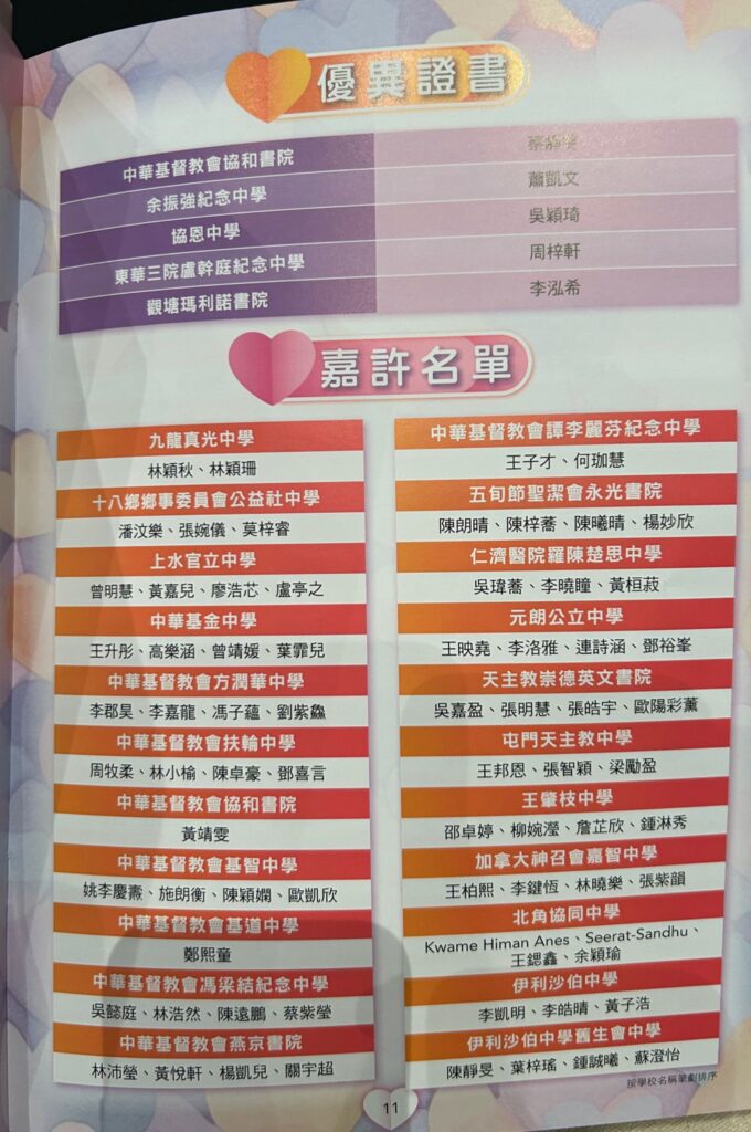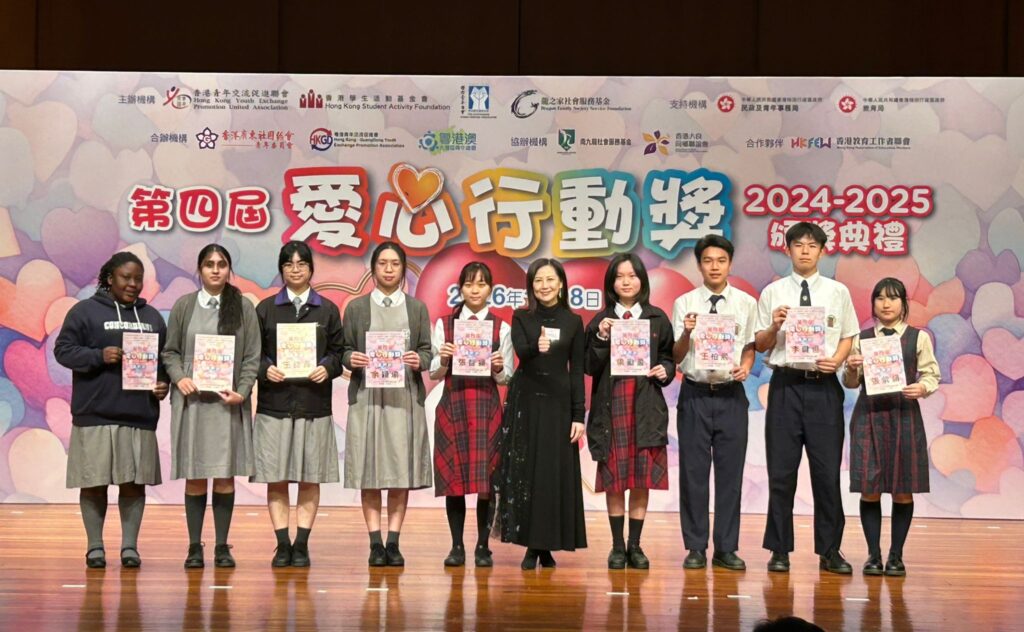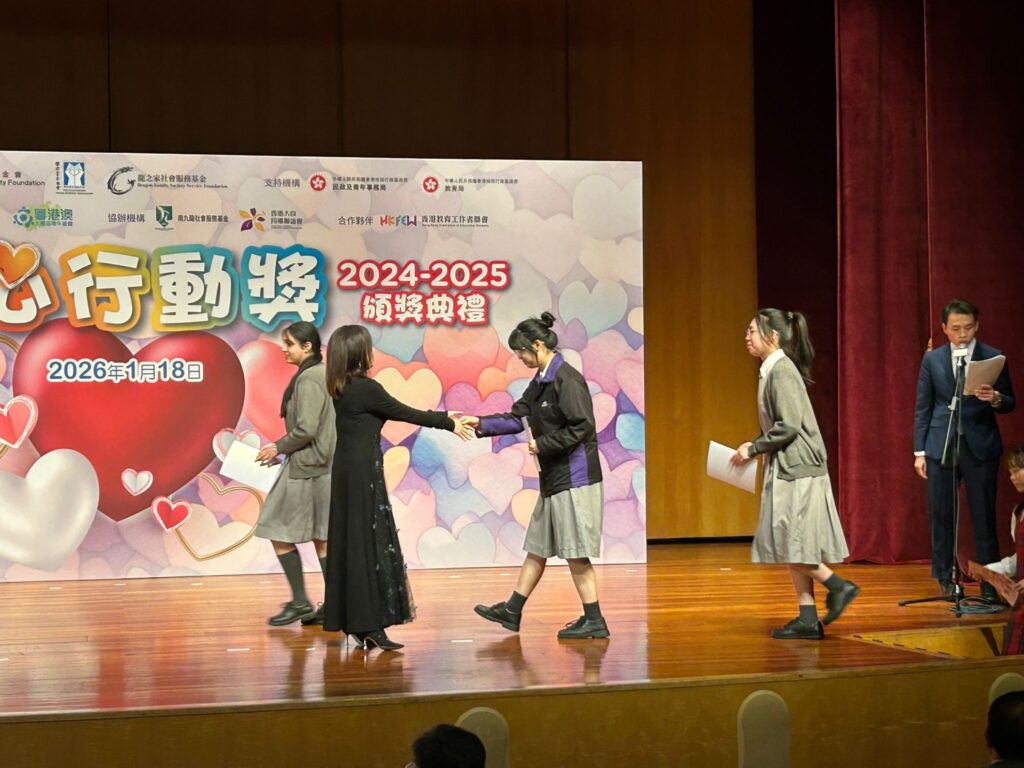 20260118_第四屆「愛心行動獎2024-2025」頒獎典禮 Post author:CLSNP Post published:29/01/2026 Post category:學校活動 / 校園活動 第四屆「愛心行動獎2024-2025」頒獎典禮本校有四位學生獲提名由香港青年交流促進聯會主辦的參加第四屆「愛心行動獎 2024-2025」,憑藉熱心服務,榮獲大會頒發嘉許證書,以示表揚過往一年積極參與義務工作。當日活動特別邀請了 2024 年香港十大傑出青年,前香港男子擊劍運動員張小倫先生擔任分享嘉賓,分享他在奮鬥過程中所遇到的挑戰與心得,啟發學生積極面對困難,以行動回饋社會,展現青年人的責任與擔當。 請分享 Share this content Opens in a new window Opens in a new window Opens in a new window Opens in a new window Opens in a new window Opens in a new window Opens in a new window Opens in a new window Opens in a new window Opens in a new window You Might Also Like 20250428_利倚恩作家講座《校園小說給你成長的勇氣》 29/04/2025 20240509-學校書展 09/05/2024 20240426-韓國交流團 26/04/2024