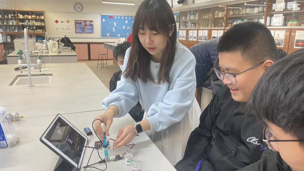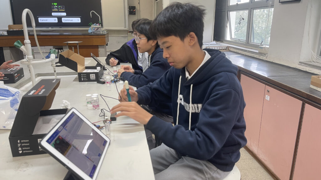 工作坊內容豐富且具啟發性:首日活動中,學生動手製作了濾水裝置;次日則利用紫椰菜提取天然酸鹼指示劑,觀察其中的化學變化;最後一節課更結合了資訊科技,教導學生利用 Micro:bit 編程製作酸鹼傳感器,體現了科學與科技的結合。