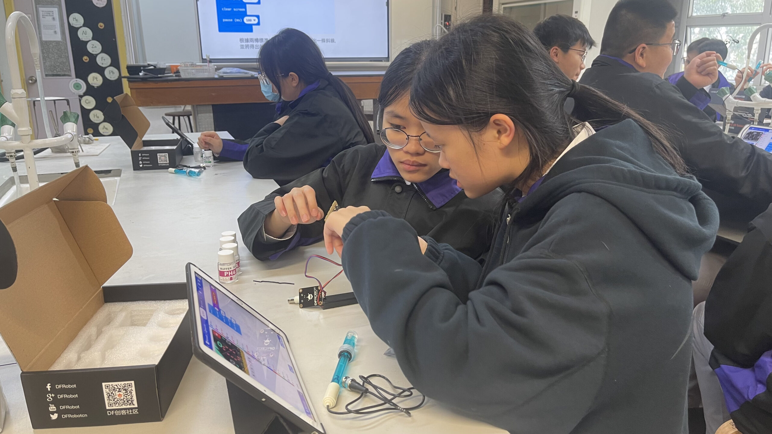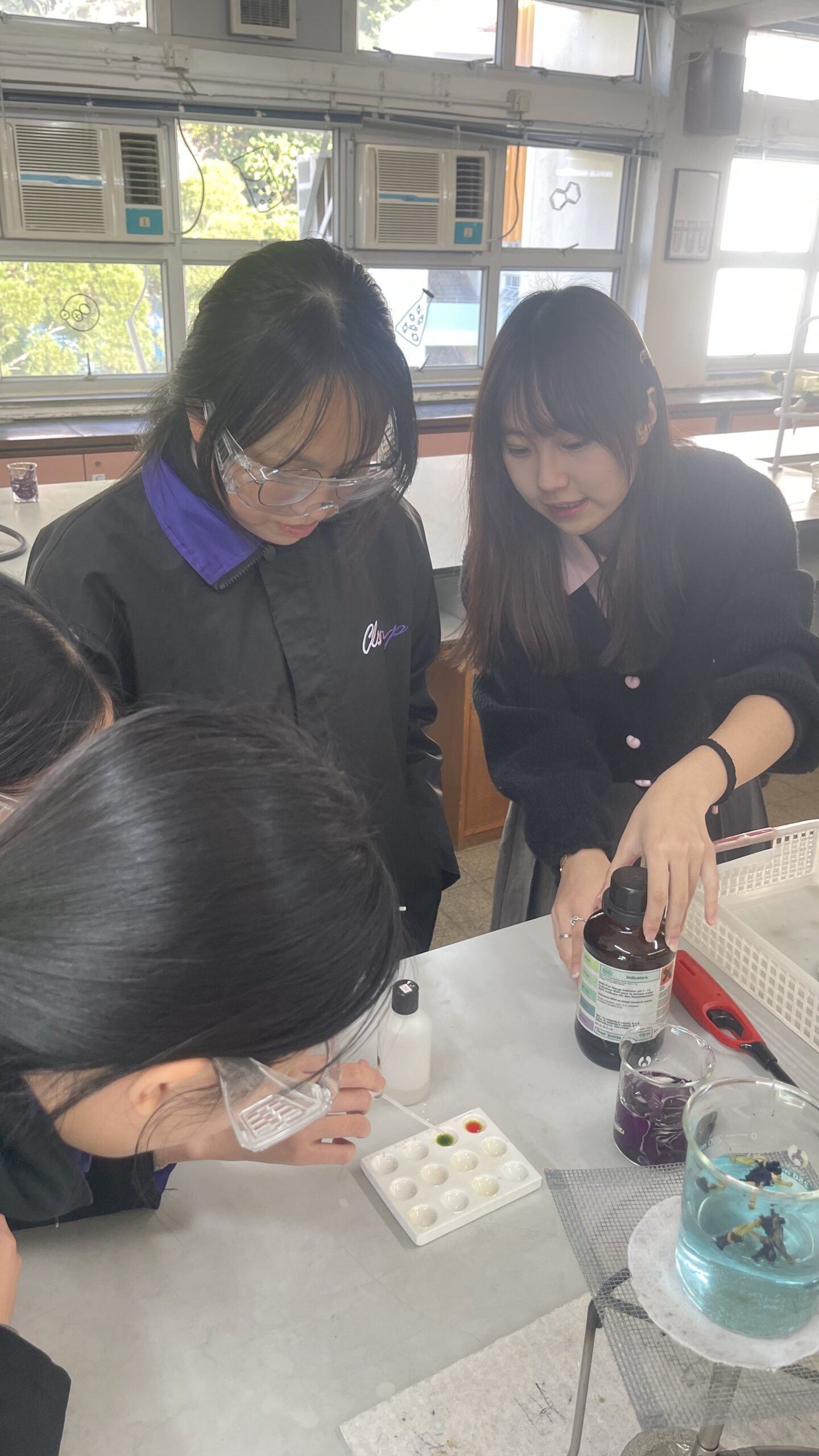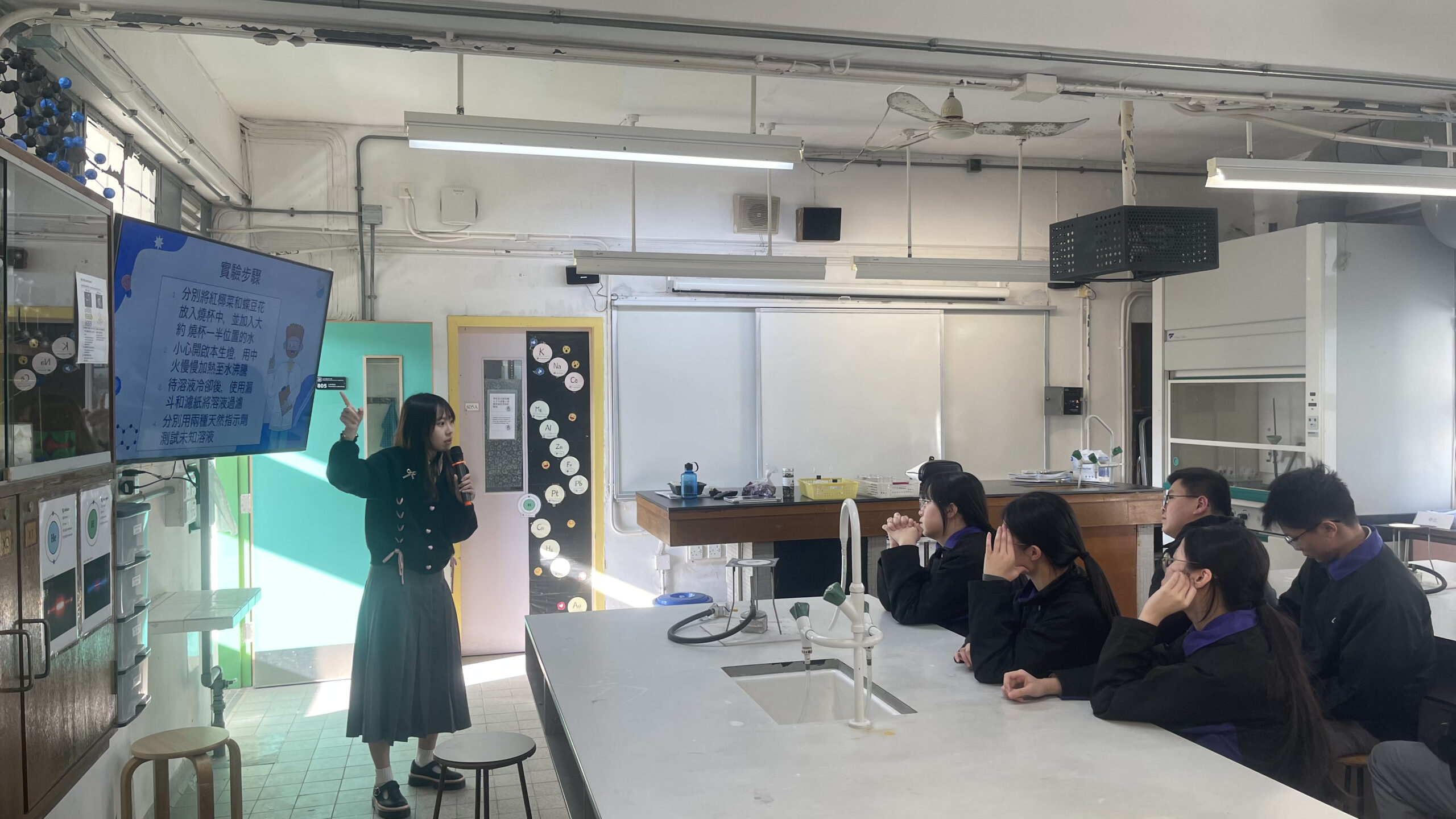 工作坊內容豐富且具啟發性:首日活動中,學生動手製作了濾水裝置;次日則利用紫椰菜提取天然酸鹼指示劑,觀察其中的化學變化;最後一節課更結合了資訊科技,教導學生利用 Micro:bit 編程製作酸鹼傳感器,體現了科學與科技的結合。