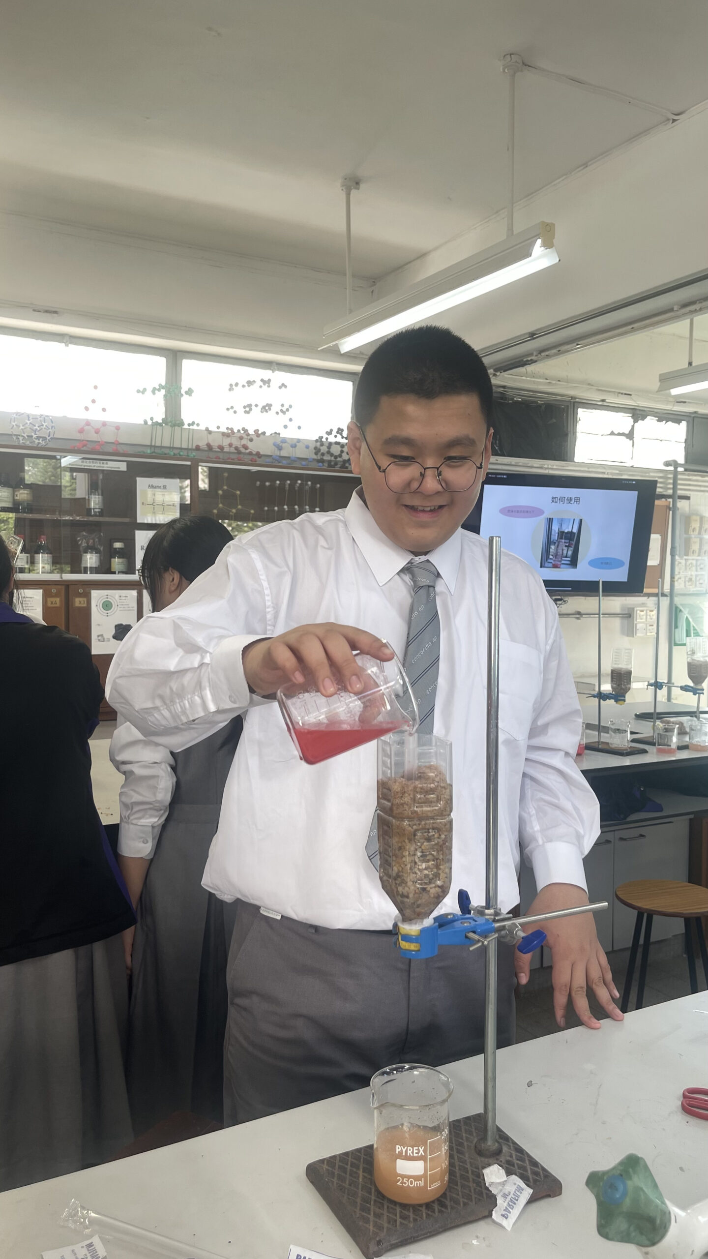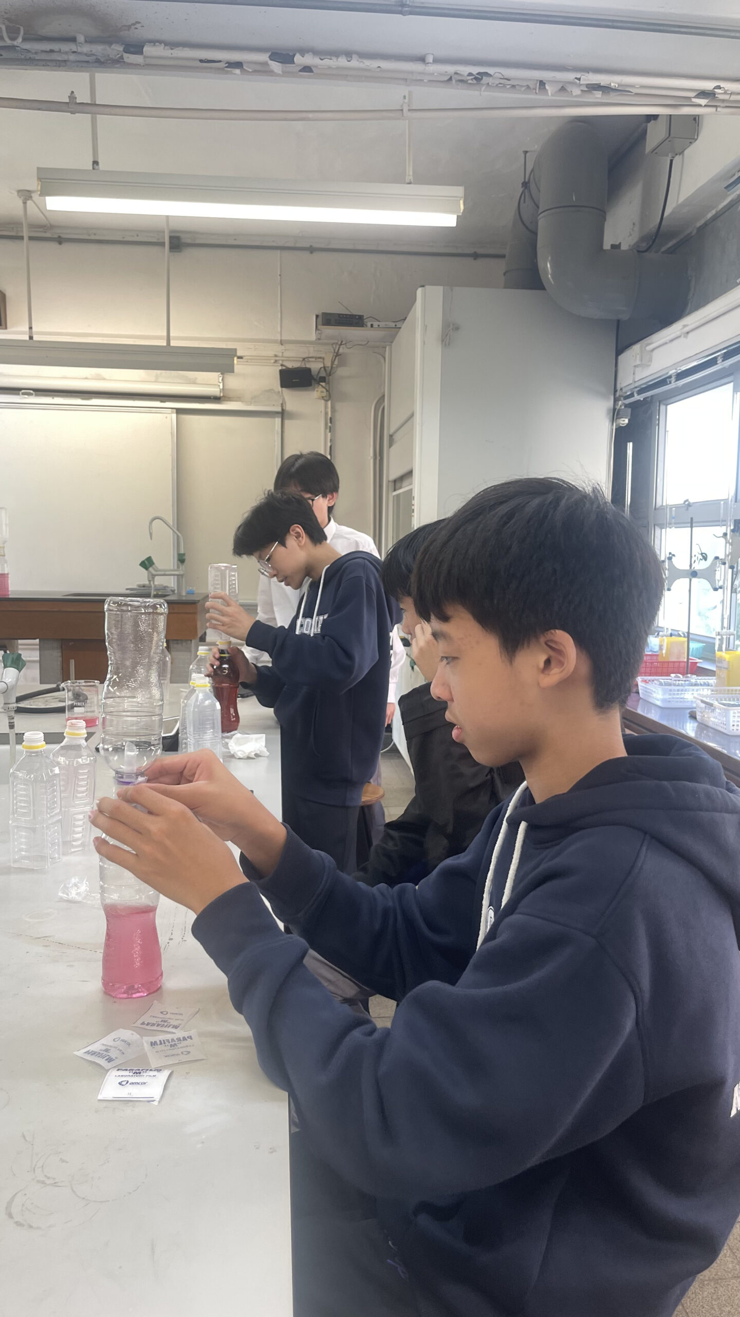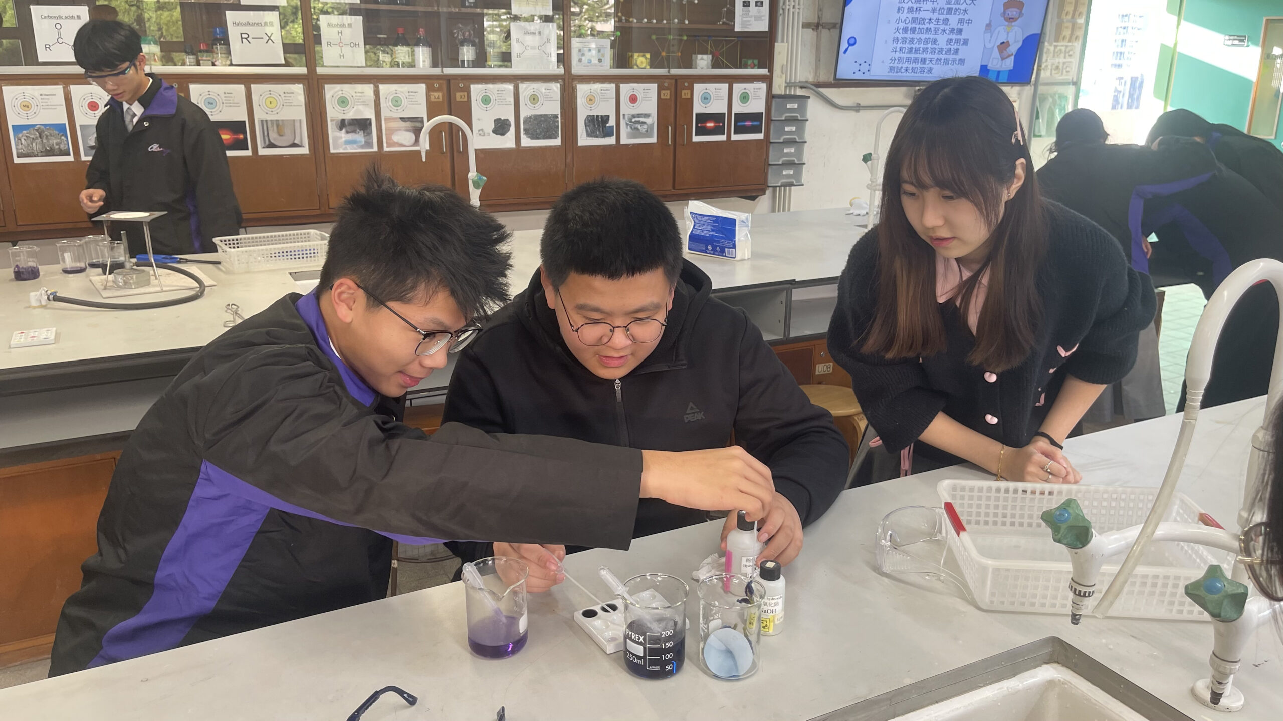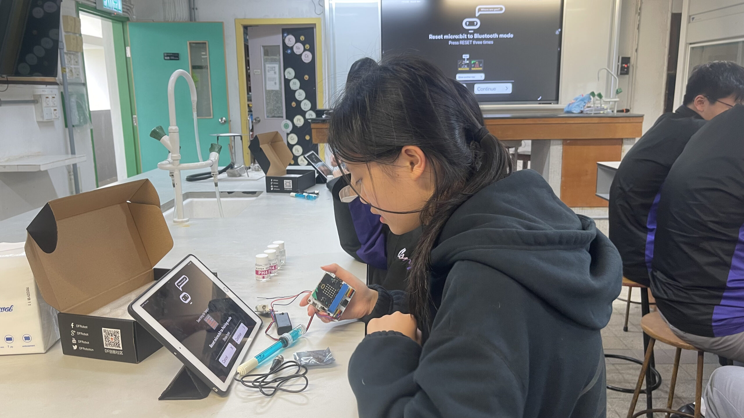 工作坊內容豐富且具啟發性:首日活動中,學生動手製作了濾水裝置;次日則利用紫椰菜提取天然酸鹼指示劑,觀察其中的化學變化;最後一節課更結合了資訊科技,教導學生利用 Micro:bit 編程製作酸鹼傳感器,體現了科學與科技的結合。